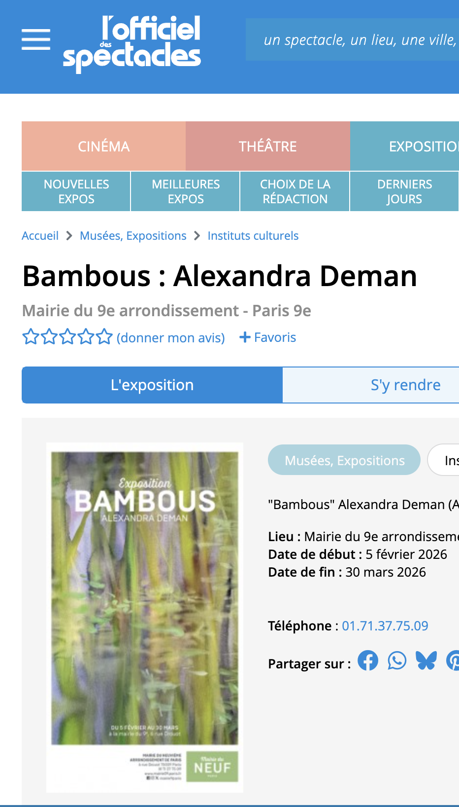 Expo Mairie du 9ème à Paris. 5 février – 30 Mars 2026